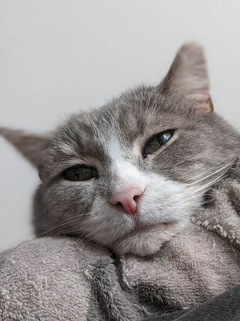 After cleaning up that mess, we went to our rooms to change. And that’s when the second round of fuckery started. You see, as I was walking out of my bedroom, I saw two grey tabbies. Simone and….Teddy.